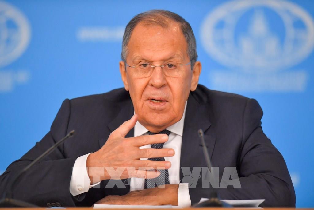 Ngoại trưởng Nga Sergei Lavrov tại cuộc họp báo ở Moskva. Ảnh: THX/TTXVN