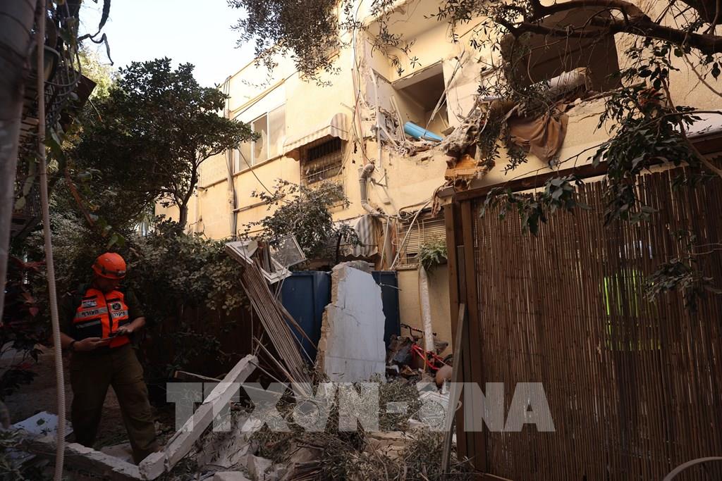 Hiện trường cuộc không kích của Iran tại Tel Aviv, Israel. Ảnh: THX/TTXVN