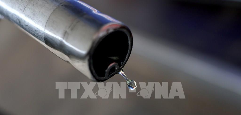Xăng nhỏ giọt từ vòi bơm tại trạm xăng ở London, Anh. Ảnh: THX/TTXVN