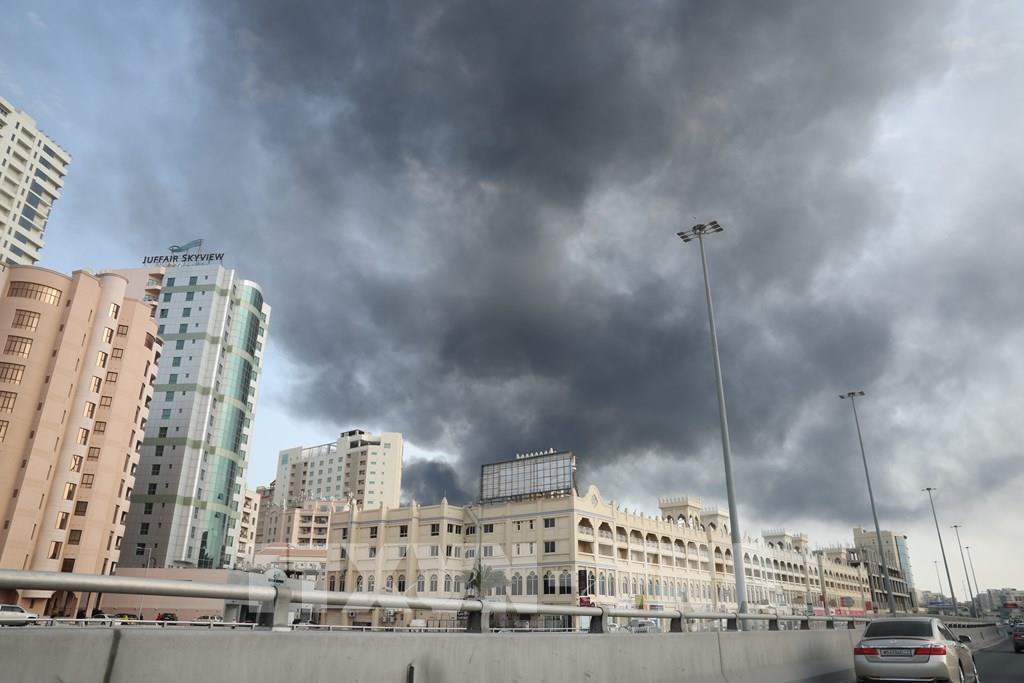 Khói bốc lên sau khi tên lửa Iran đánh trúng trụ sở Hạm đội 5 của Hải quân Mỹ ở Manama, Bahrain ngày 28/2/2026. Ảnh: AA/TTXVN