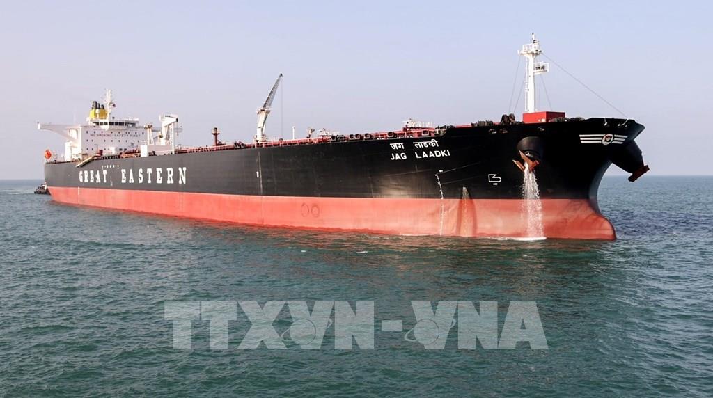 Tàu chở khí dầu mỏ hóa lỏng mang cờ Ấn Độ cập cảng ở Mundra sau khi di chuyển qua eo biển Hormuz. Ảnh: ANI/TTXVN