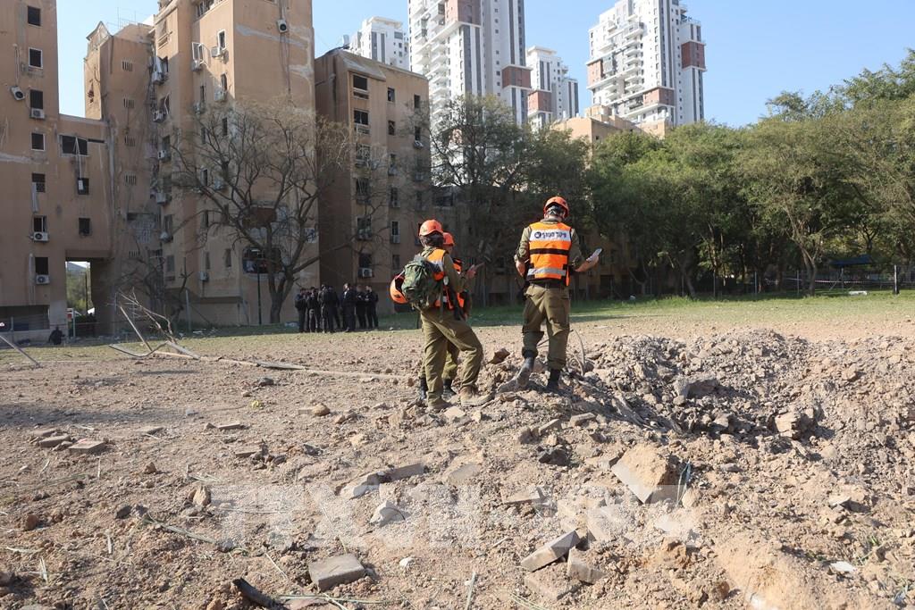 Hiện trường một vụ tấn công tên lửa tại Be'er Sheva, Israel, ngày 2/3/2026. Ảnh: THX/TTXVN