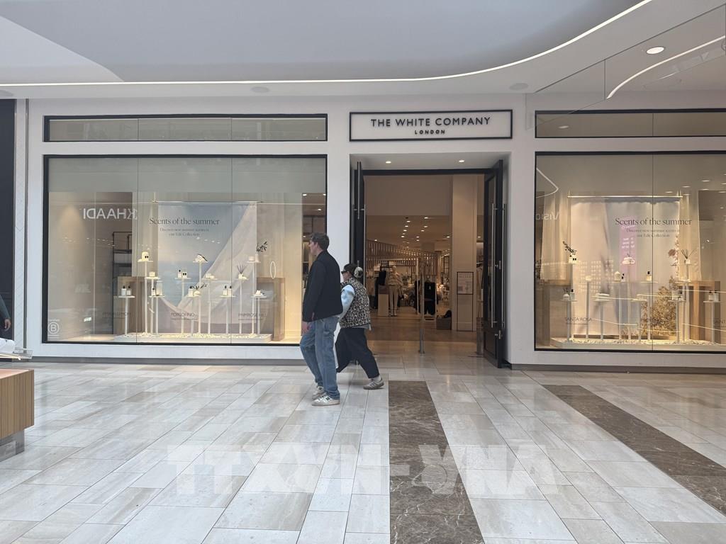 The White Company, thương hiệu bán lẻ cao cấp của Anh, vắng khách, giữa nhịp mua sắm trầm lắng. Ảnh: Hương Giang - PV TTXVN tại Anh