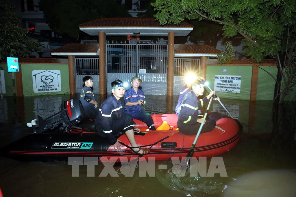 Hơn 22 giờ đêm 7/10, những chiếc thuyền, ca nô của lực lượng vũ trang tỉnh Lạng Sơn vẫn thường trực trên Quốc lộ 4A, vị trí bắt đầu điểm ngập sâu, qua địa bàn thôn Cốc Phát, xã Thất Khê để di chuyển tài sản, di dời những hộ dân ở vùng bị nước ngập sâu đến nơi an toàn. Một số người dân trên địa bàn xã này đã sử dụng bè mảng ghép bằng những cây luồng để di chuyển qua vùng ngập lụt. Các lực lượng làm nhiệm vụ tại vùng “rốn lũ” Thất Khê thức xuyên đêm để canh nước lũ, bảo đảm an toàn cho nhân dân. Lên chiếc thuyền nhỏ mà cán bộ chiến sĩ Bộ Chỉ huy Quân sự tỉnh Lạng Sơn đang di dời người dân từ vùng ngập lụt đến nơi an toàn, vượt qua quãng đường hơn 1km trên Quốc lộ 4A ngập nặng có nơi lên tới 1,5 đến gần 2m, phóng viên TTXVN cảm nhận rõ những hiểm nguy đang rình rập. Xuất phát từ điểm ngập ở thôn Cốc Phát, chiếc thuyền nhỏ chở 6 người thỉnh thoảng lại tròng trành bởi sóng từ những chiếc thuyền chạy qua lại chở cán bộ chiến sĩ đi ứng cứu nhân dân và di dân.Hai bên đường, những ngôi nhà cấp bốn, nhà cao tầng bị ngập gần hết tầng một. Nhiều khu vực điện mất, trời tối om. Ở các ngôi nhà cao tầng, người dân đã di chuyển toàn bộ tài sản lên cao, đồng thời chuyển lên sinh hoạt trên tầng hai chờ nước rút. Khi người dân cần, lực lượng chức năng địa phương sẵn sàng hỗ trợ, giúp đỡ với tinh thần không để ai bị đói, bị khát, bị mắc kẹt trong vùng lũ. Những cán bộ chiến sĩ Bộ Chỉ huy Quân sự tỉnh, Công an tỉnh dầm mình trong mưa, quần áo ướt sũng nước có mặt tại những nơi khó khăn nhất, ngập lụt sâu nhất, nguy hiểm nhất khi dân cần giúp đỡ là những hình ảnh đẹp, thấm đẫm tình quân dân trong bão lũ...