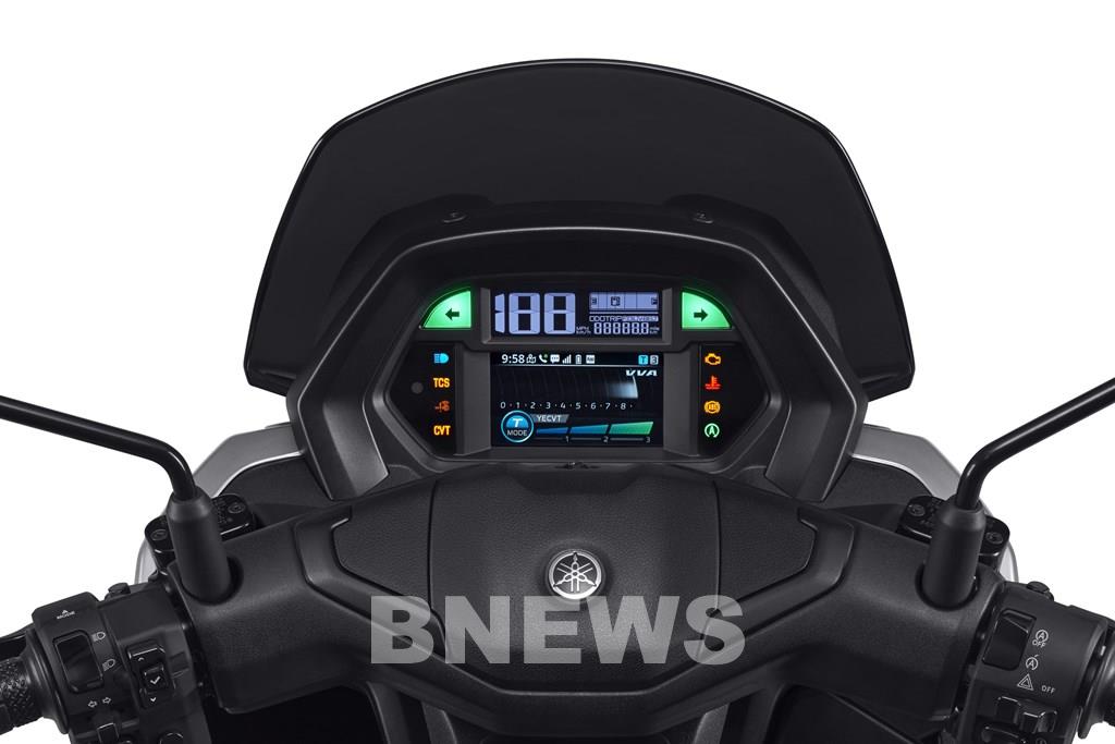 Bên cạnh hiệu năng, NMAX 2025 được trang bị loạt công nghệ thông minh và tính năng an toàn nhằm nâng cao trải nghiệm người dùng. Màn hình TFT màu 4,2 inch kết hợp LCD hiển thị trực quan các thông tin vận hành, hỗ trợ kết nối ứng dụng Y-Connect để theo dõi dữ liệu xe, thông báo cuộc gọi, tin nhắn và lịch bảo dưỡng.